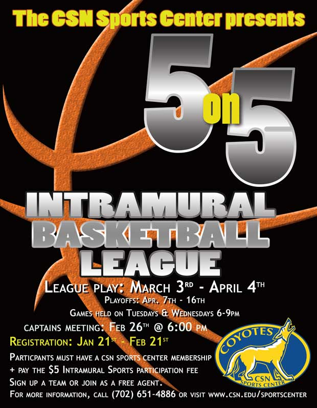 For the price of a latte any student can become a member of the College of Southern Nevada’s Sports Center and gain access to an exciting sporting activity: 5 on 5 Intramural Basketball.
