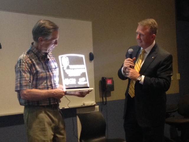 At the end of the presentation Gallagher was given an award by Paul Moffat, CEO of Arista Wealth Management. Moffat also honored EBS’ previous speakers Dana White and Rick Harrison with this appreciation award.