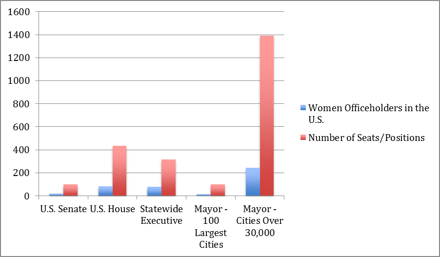 According to a 2015 Rutgers Center for American Women and Politics report, women make up 20 percent of the U.S. Senate and only 19.3 percent of the U.S. House. Statewide, there are only six female governors. Citywide, there are only 16 percent female mayors of the top 100 largest cities.