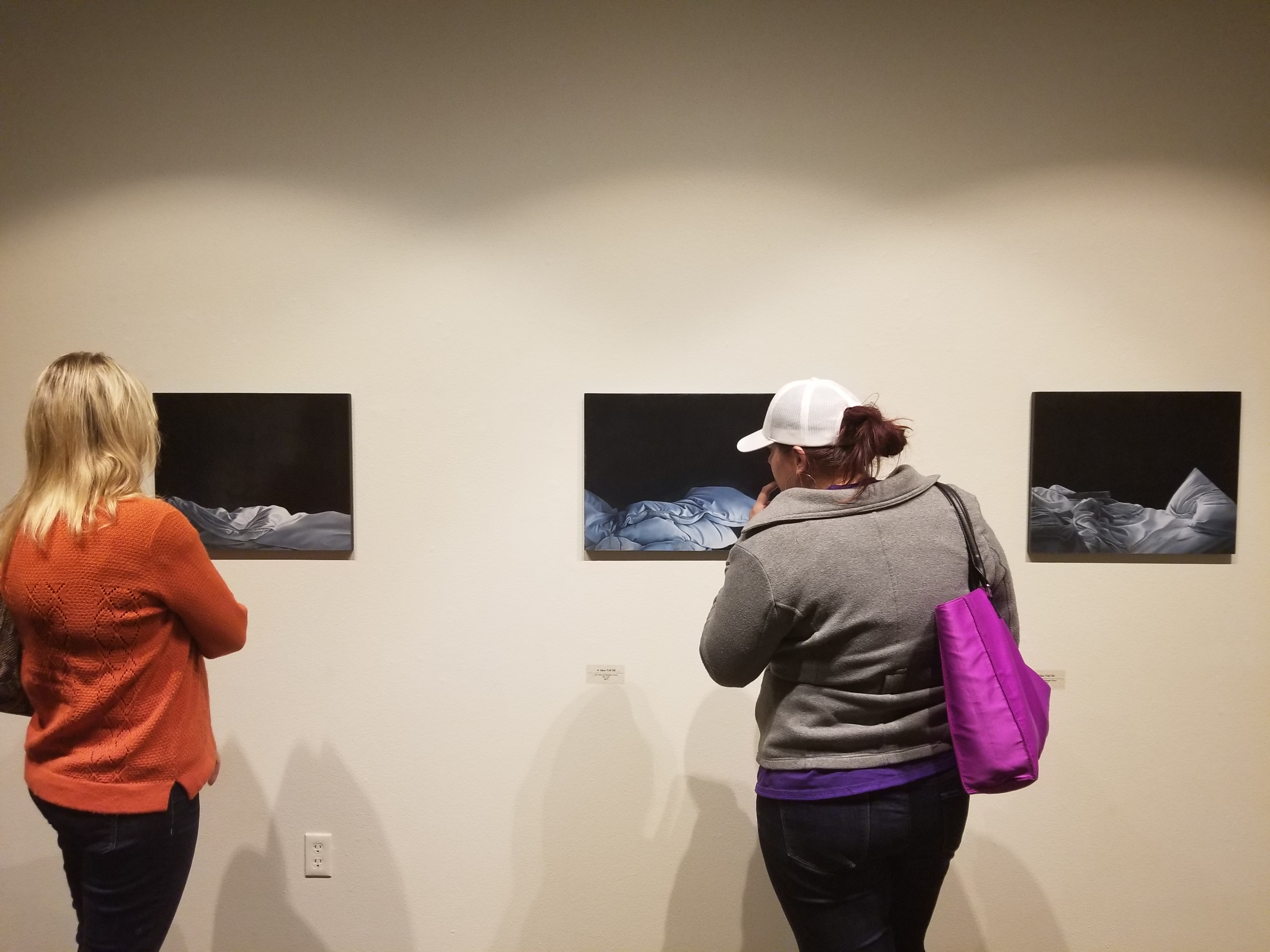 Rebecca Lemperle, who is a fan of Serpick’s work and attended the special event, said “A New Fall” collection inspires her on many levels. “The work has great detail and it gives me a sense of emptiness and sorrow she went through,” Lemperle said. She also explained how “A New Fall #1” is the piece she liked the most because of its simplicity though it contains a lot of detail. “I can relate to it because I see my bed. I have struggled with depression and anxiety myself and like Stephanie, I often turned to my bed as a place of retreat and comfort.”